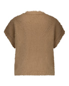 Red Button Sleeveless Fuzzy Almond