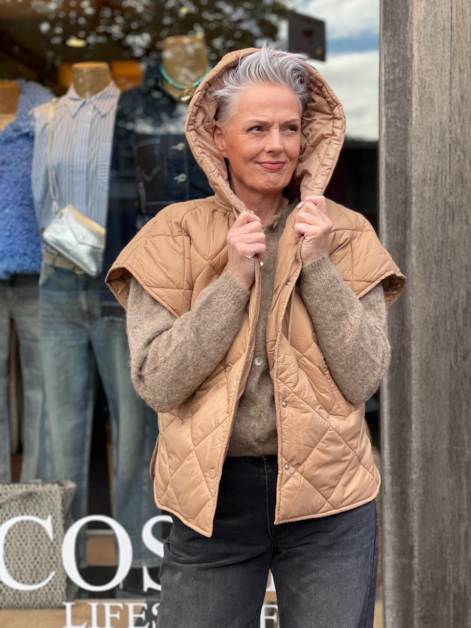 Yaya Nylon Reversible Bodywarmer Beige