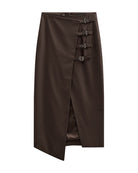 CMTAILOR-SKIRT is a wrap skirt in a premium material with a concealed back zip fastening, an asymmetrical front slit, a tight fit and straps with large buckles by the side. 64% Polyester /34% Viscose/2% Elastane