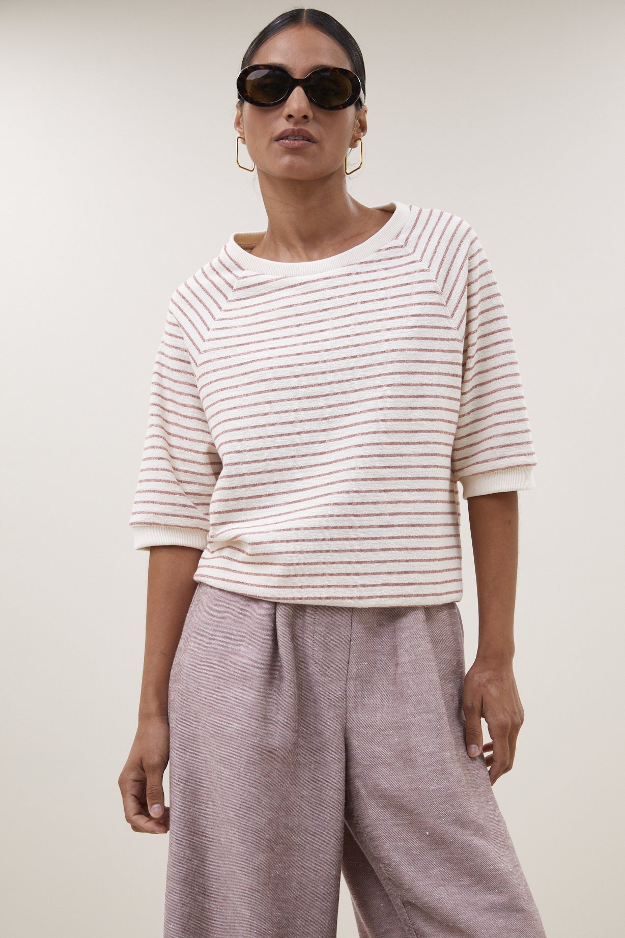 By Bar Neva Heavy Jersey Stripe Top Sunset Rose Stripe