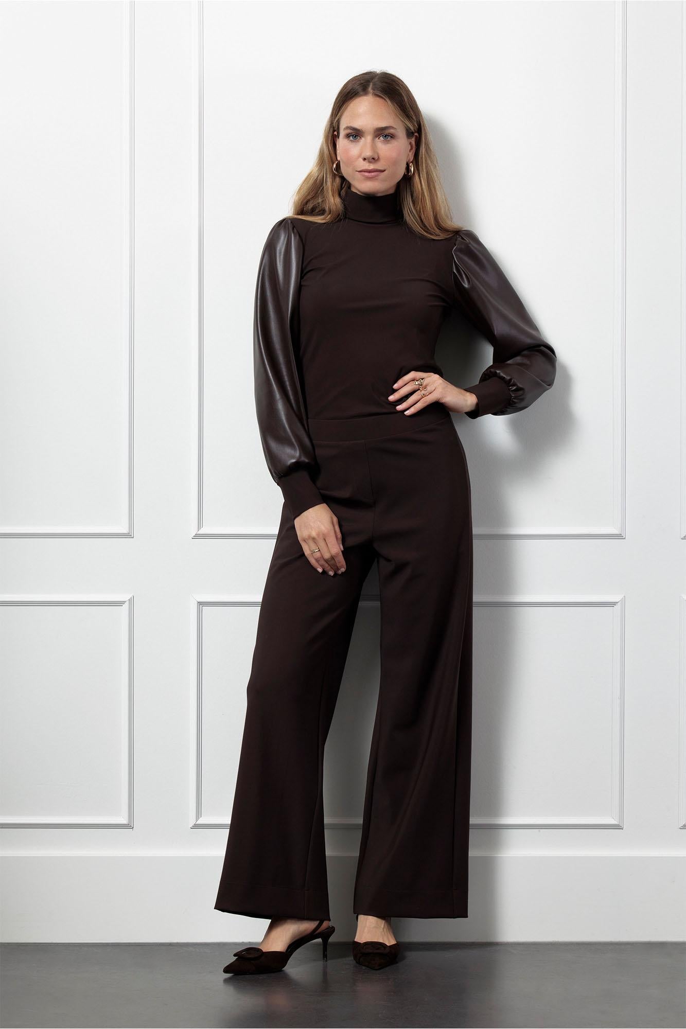 Studio Anneloes Noortje Faux Leather Top 8700 Espresso