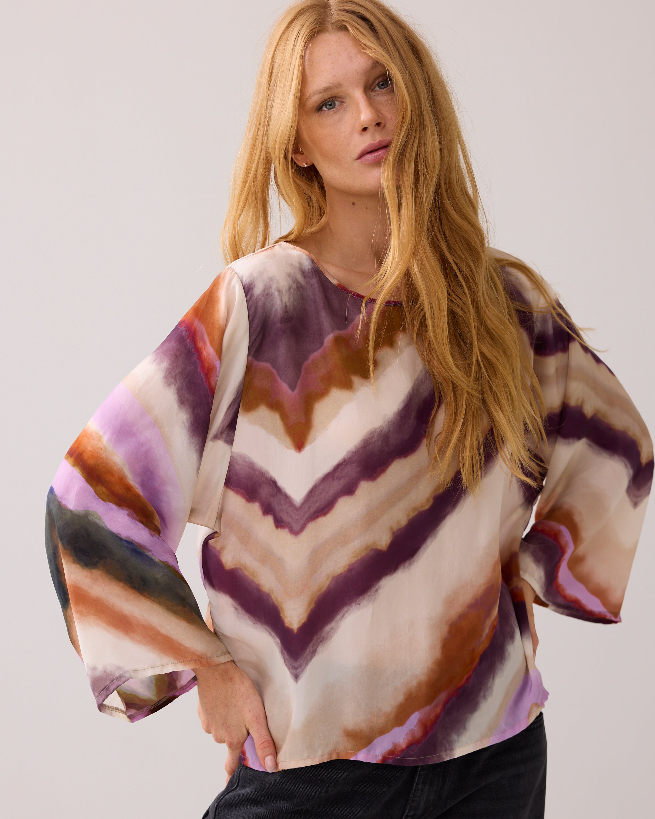 Summum Top Wide Sleeves Zigzag Print 120 Multicolour