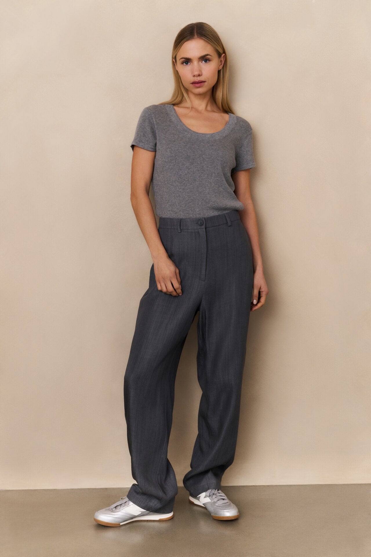 Yaya High Waist Carrot Trousers Washed Grey