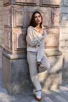 Yaya Knitted Sweater With Contrast Collar Heather Grey Dessin