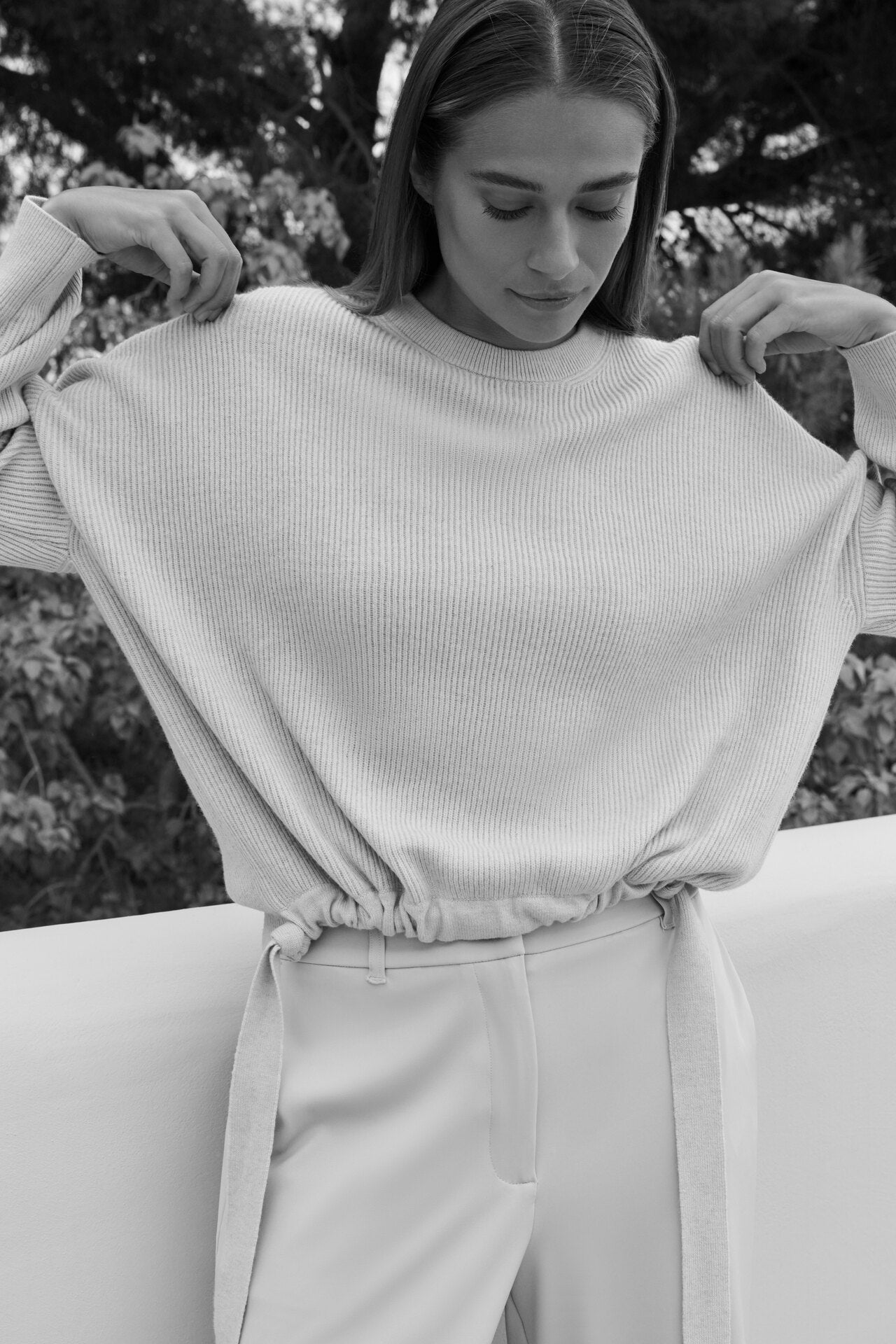 Yaya Knitted Sweater With Tie Details Kit Beige Melange