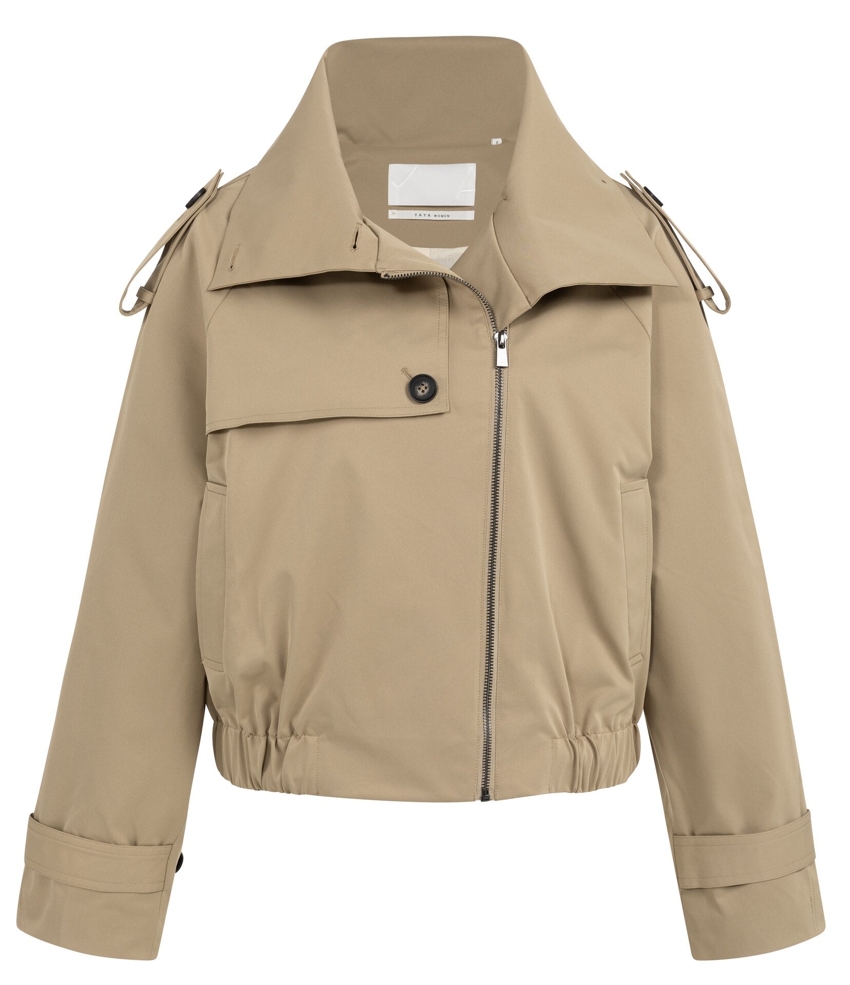 YAYA Short bomber jacket with trench details KHAKI GREEN | Compositie: 100% Polyester, Lining: 100% Cotton