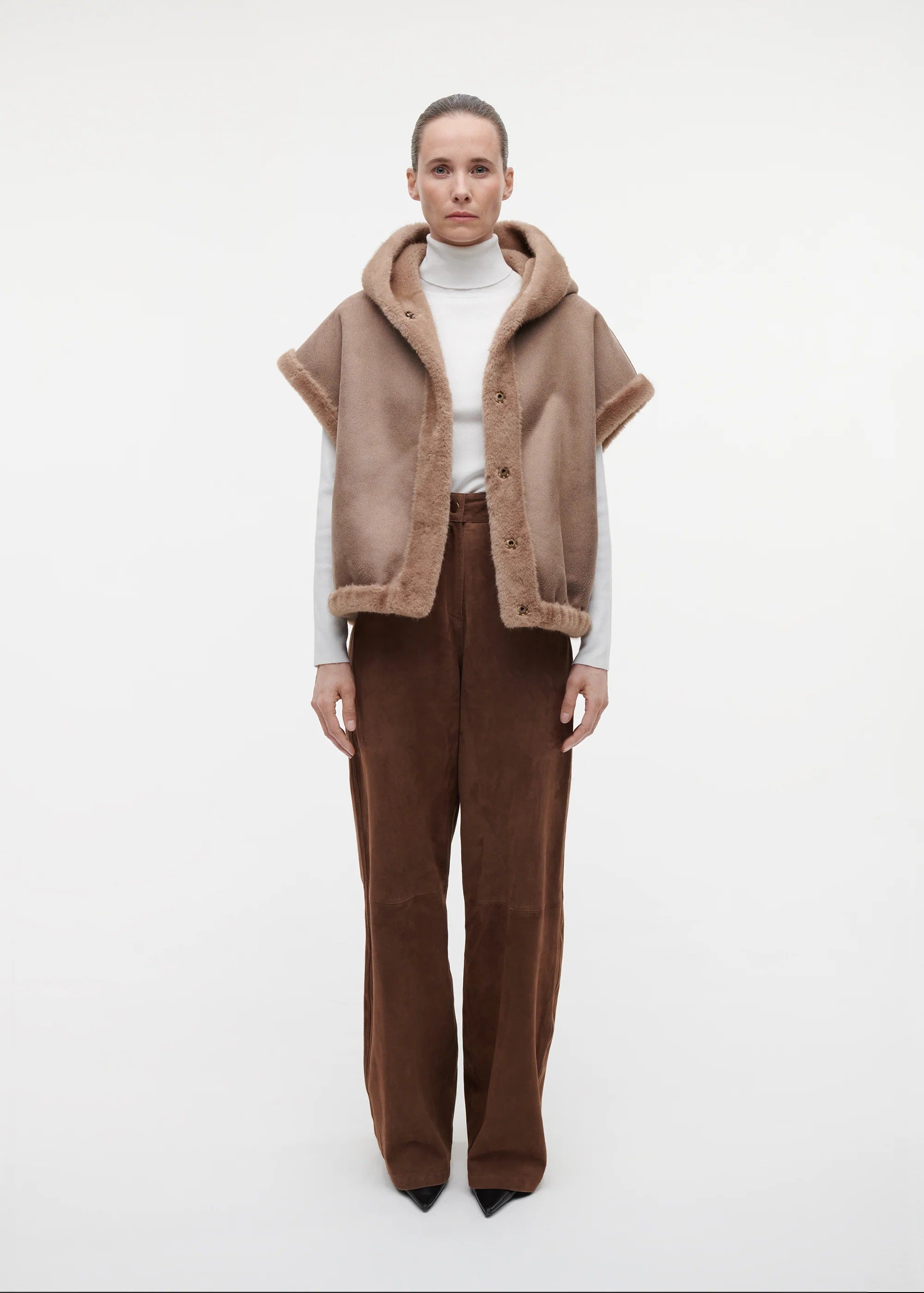 Studio Ar Olena Faux Mink Reversible Gilet Camel