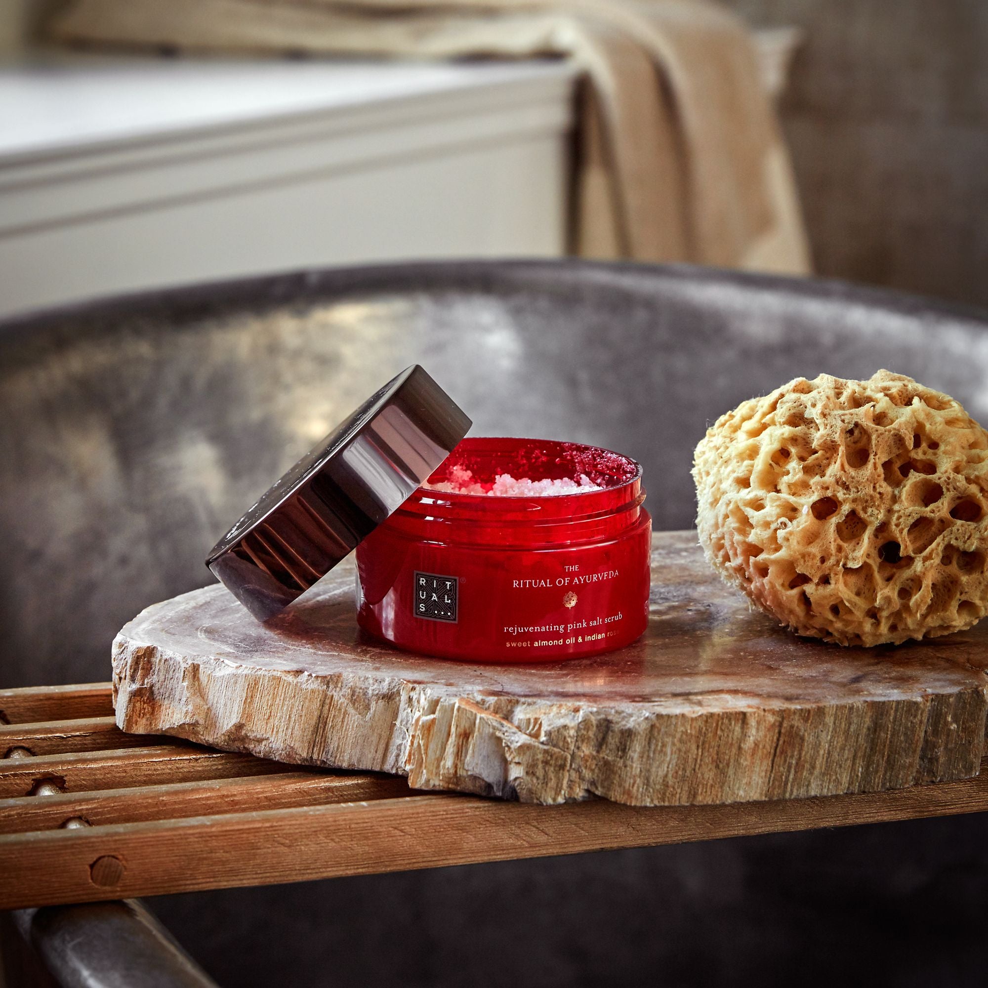 | Een zuiverende bodyscrub met eeuwenoude zoutkristallen uit de Himalaya die een zuiverend en harmoniserend effect hebben op je innerlijke balans en vitaliteit. Deze zuiverende scrub laat een intens verzachtend dun laagje olie op de huid achter. Verrijkt met het heerlijke aroma van Indiase roos en de verzachtende effecten van zoete amandelolie. Volgens de traditionele Ayurvedische wetenschap is exfoliëren een zeer doeltreffende manier om je lichaam te zuiveren en de energiestroom te stimuleren. Dit proces werkt nog beter in een warm bad. |