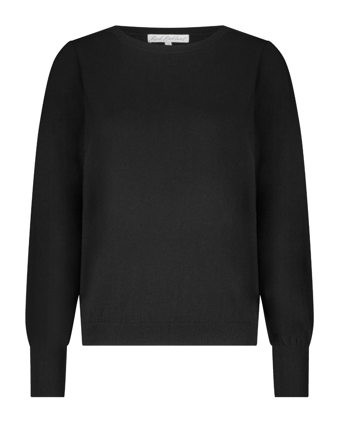 Red Button Sweet Puff Sleeve Black