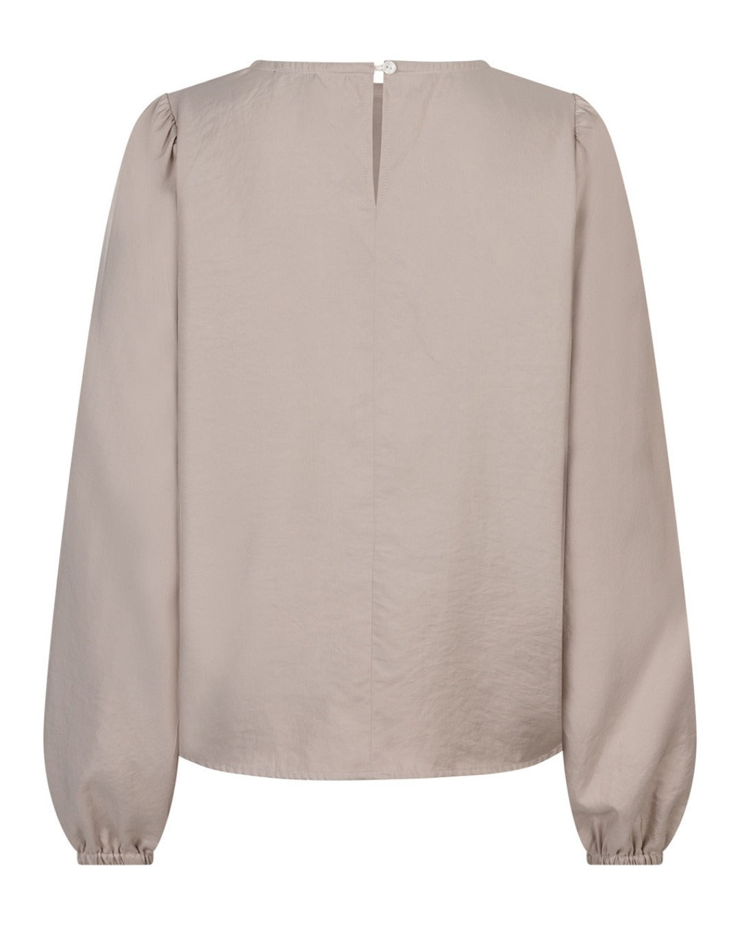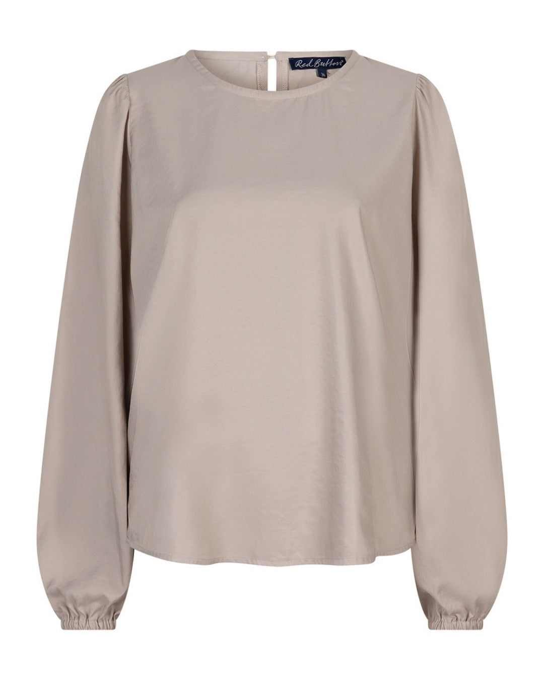 Red Button Fuzzy Puff Sleeve Almond