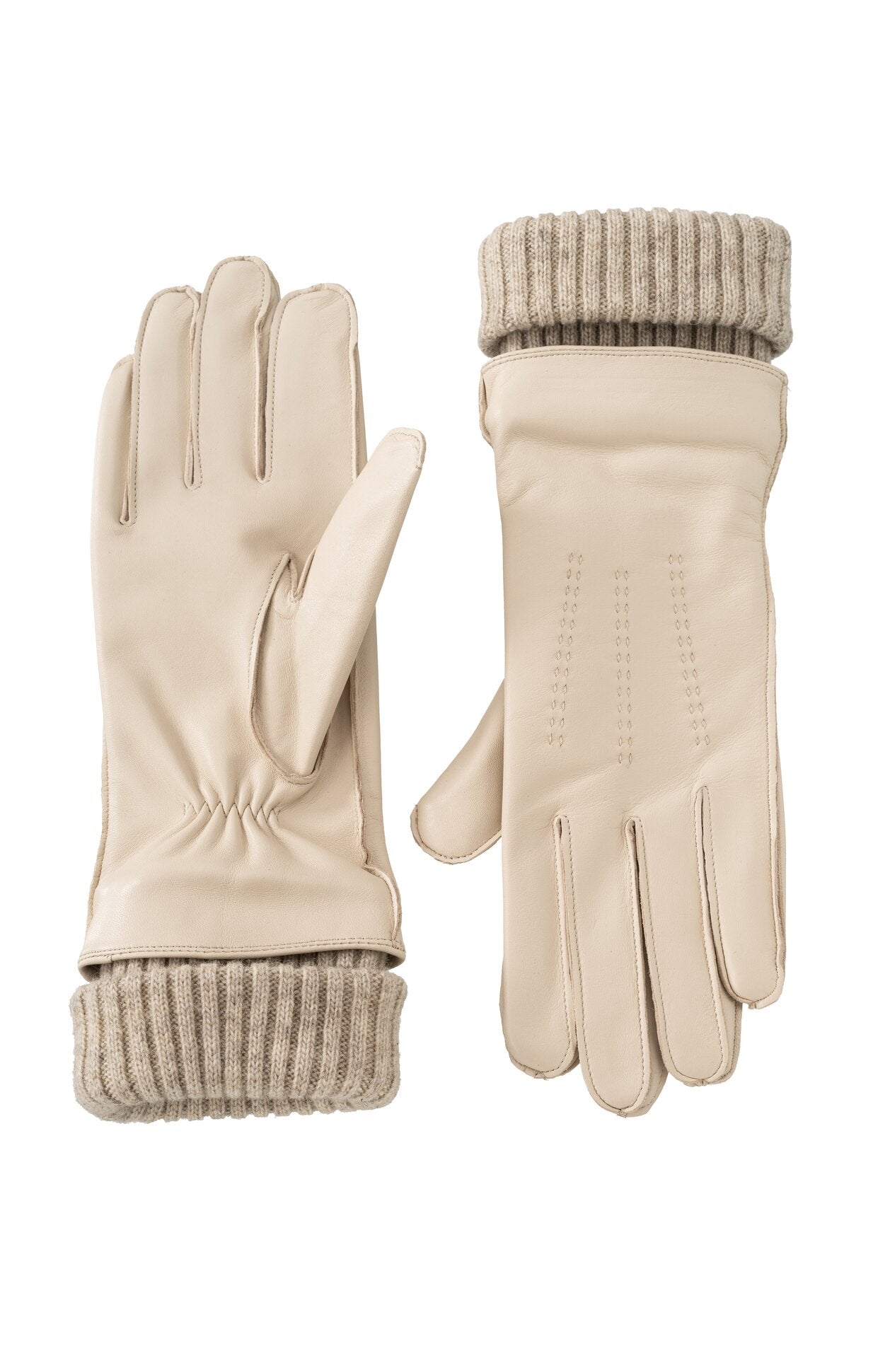 Yaya Leather Gloves Sand Beige