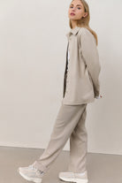 Yaya Woven High Waist Trousers Sand Melange